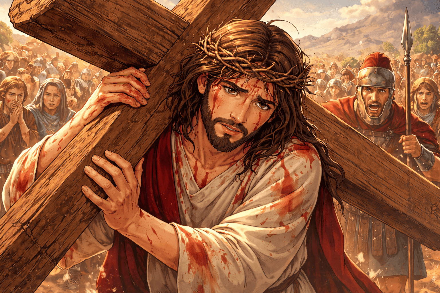 Jesus foi julgado injustamente e condenado à morte na cruz — uma forma de punição muito dura naquela época.